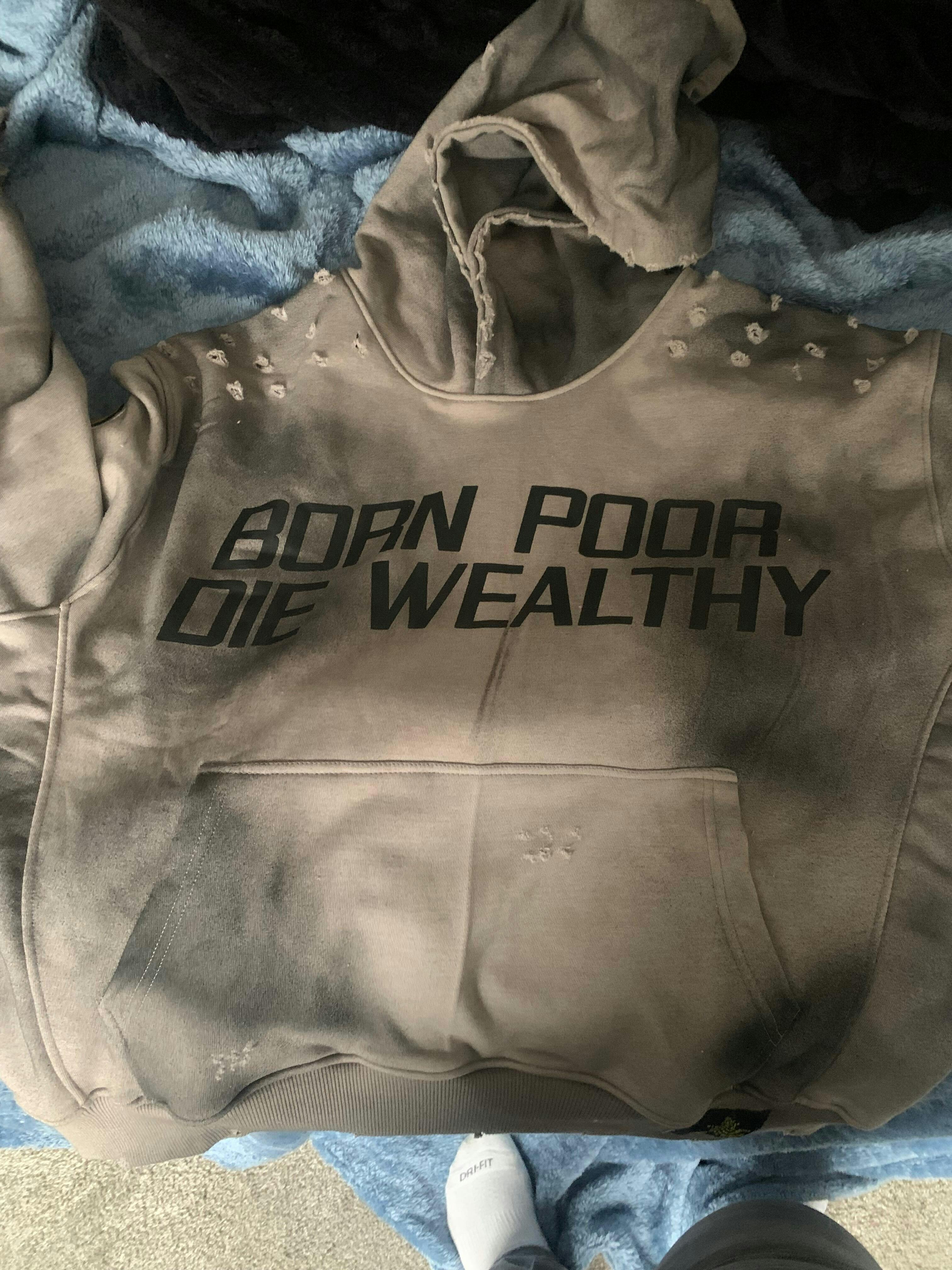 Dymon Whitaker Hoodie cozy true to size definitely would shop back just don’t know If I was given a sample came with something in the front a black line between the E&A of wealthy